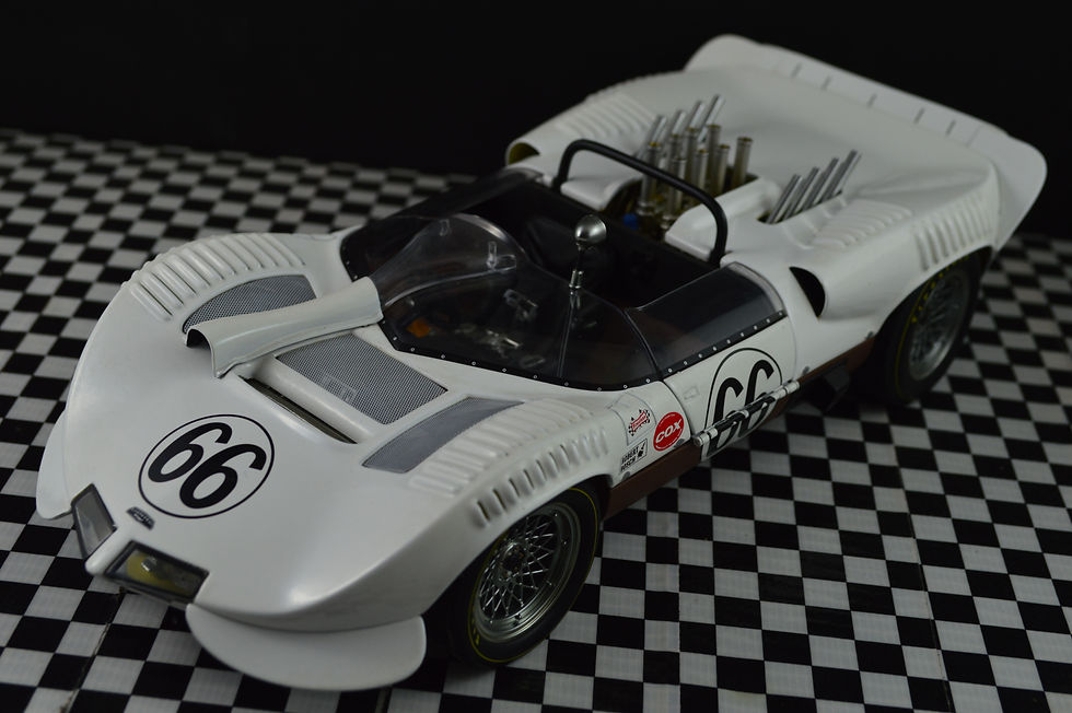 Chaparral was a leader in effective designing of air dams and spoilers. Their high point being the 1966 2E can-am car. The 2J is the first "ground-effects" car. The unique use of a semi-automatic transmission beginning with the Chaparral 2 is a major reason for their early success. Tires weren't good enough yet to be able to use all the power the 327 Chevy engine could make in 1964, so the torque converter allowed for better traction.